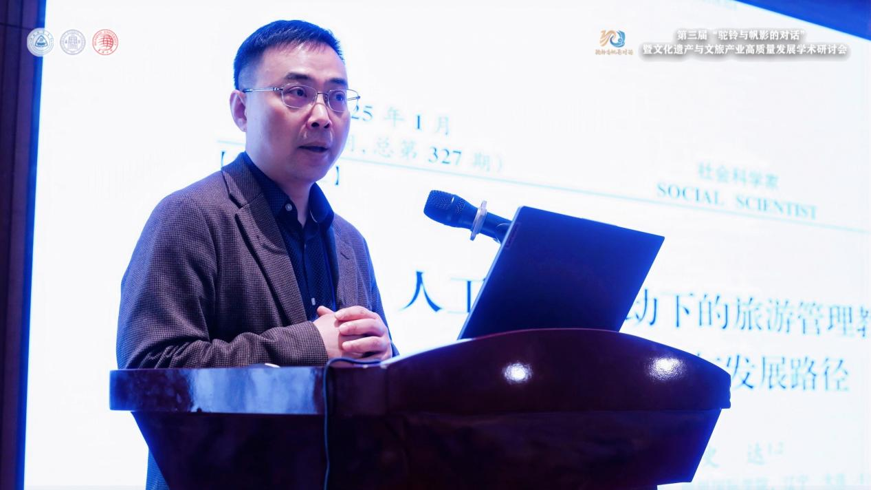 主旨报告(下半场)共有7位专家进行分享,由西北师范大学Rule34 院长梁旺兵主持,分享专家分别是中南财经政法大学旅游研究院院长邓爱民,《旅游学刊》执行主编、教授张凌云,南开大学旅游与服务学院院长徐虹,东北财经大学萨里国际学院院长史达,海南大学国际旅游与公共管理学院党委书记郭强,华侨大学Rule34 院长谢朝武,Rule34 院长孙振杰分别进行关于《科技赋能遗产新生,数智擘画文旅蓝图》、《北京中轴线遗产旅游开发利用与保护》、《文化旅游赋能乡村振兴的路径与模式》、《生成式AI与旅游管理范式转型:教育体系重构与职业能力重塑》、《南海深远海文物遗产资源保护与旅游开发》《旅游地非物质文化遗产的时尚传播》、《长城文化遗产栖息地的适应性演进》等汇报。