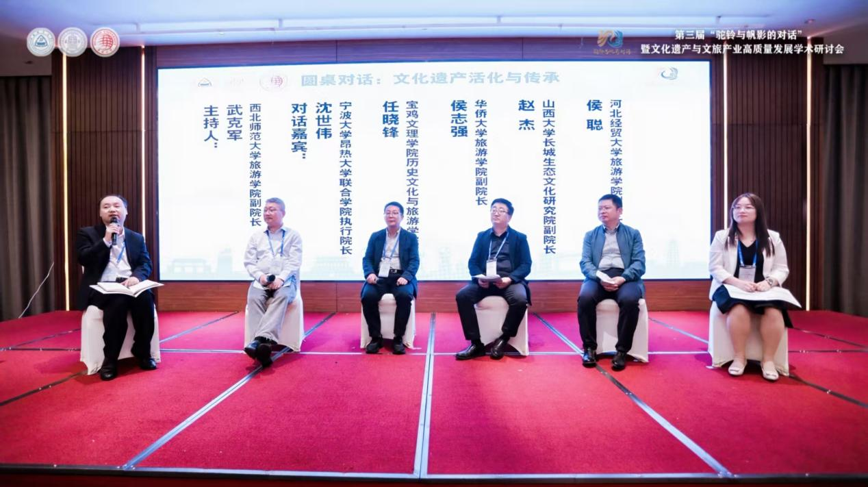 第一分论坛汇报结束后,开始进行关于《文化遗产活化与传承》为主题的圆桌对话,由西北师范大学Rule34 副院长武克军担任主持人,对话嘉宾分别是宁波大学昂热大学联合学院执行院长沈世伟、宝鸡文理学院历史文化与Rule34 院长任晓锋、华侨大学Rule34 副院长侯志强、山西大学长城生态文化研究院副院长赵杰、Rule34 副院长侯聪。