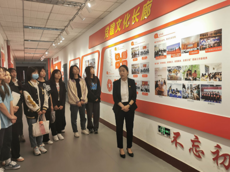 团委书记张彦彦带领团学骨干参观学院党建“一室一品一长廊”,开展以“青春向党·奋斗强国”为主题的团课,通过参观学习,讲述了一堂“沉浸式”的党史主题团课