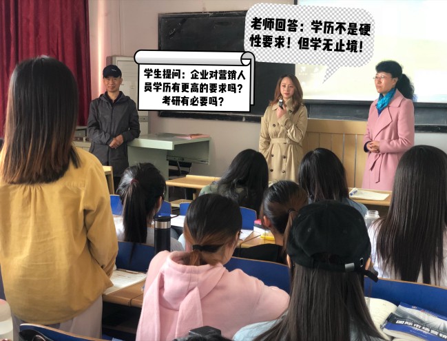 讲解之后的提问互动环节气氛活跃,同学们争先恐后地提出自己感兴趣的问题,李经理从实战角度为同学们解惑,指导同学们规划职业方向、提升学习能力、选择实习单位、认知就业趋势等。李雪经理丰富的实战经验、突出的营销业绩和精彩的案例分析以及细致耐心的回答,极大地激发了学生对将来从事市场营销工作的自信和热情,加深了学生对国际市场营销、互联网营销理论知识的理解,开拓了眼界,增强了感性认识,获取了丰富的实战经验,为学生今后的专业学习指明了方向,提高了专业认同感和自豪感,取得了超出预期的良好效果。