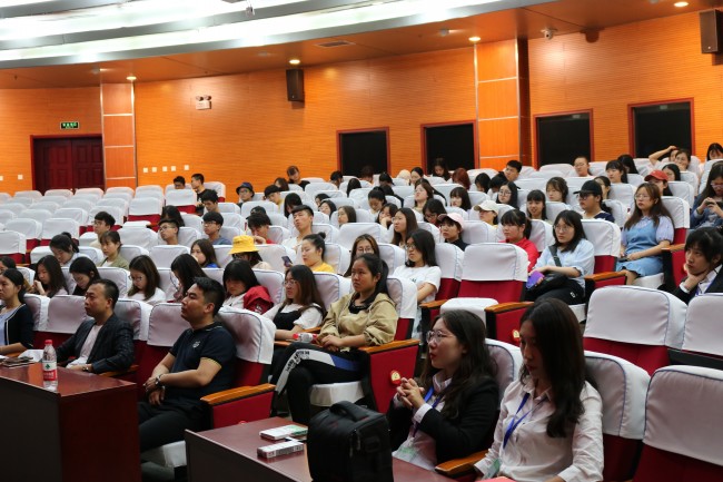颁奖结束后,杨志全分享《荔波漳江 一江两岸》的项目策划,他具体介绍了项目地概况和资源,表示希望从参会学生当中征集到优秀的项目形象定位和宣传语。分享最后,杨志全鼓励学生在校期间,要时刻关注国家政策,了解市场热点,多“走出去”看一看,为自己将来的发展打下坚实基础,争做旅游行业的佼佼者。