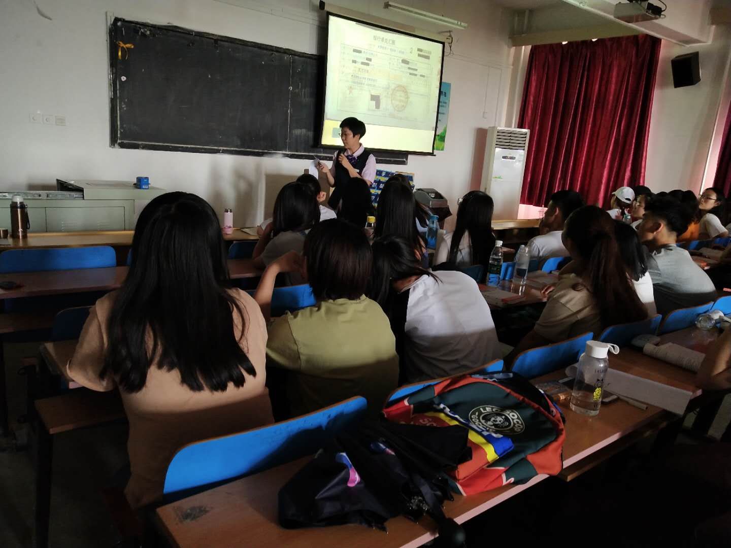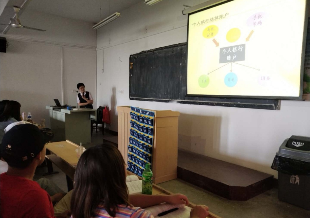 王丹副主任首先从日常生活中的银行卡事例引入同学们的思考。然后将工作中具体接触到的各种票据如何分类、核对、鉴别真伪、承兑以及容易出现的一些问题进行了详细地介绍。其次,讲解了个人征信与企业征信的重要性和查询流程,并提醒同学们日常生活中要格外重视个人信用,如支付宝花呗等软件应尽量不用,以免将来需要银行借贷时影响信用评价。再次,作为一个银行工作者,还向同学们提了三点理财规划建议,即养成储蓄习惯、明确理财目标、远离非法借贷非法信用。王丹副主任揭示了电信诈骗的手法以及预防方法,一定要提高自身防范意识,并发放了远离非法集资的宣传手册。最后,就会计专业的就业也给出了三个方向的规划指导,包括银行业、保险业、证券业,并从工作硬性要求,大学期间可考取哪些资格证做好就业前的准备工作给出了具体建议。