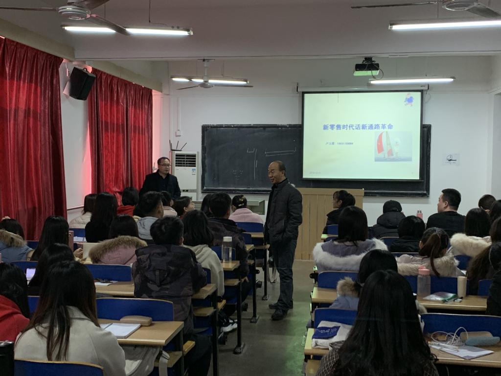 邀请河牧牧业集团总经理卢玉谭进入旅享课堂,本次课程由王锦旺老师组织,结合《通路管理》专业课程开展的,2017级市场营销专业学生参加。