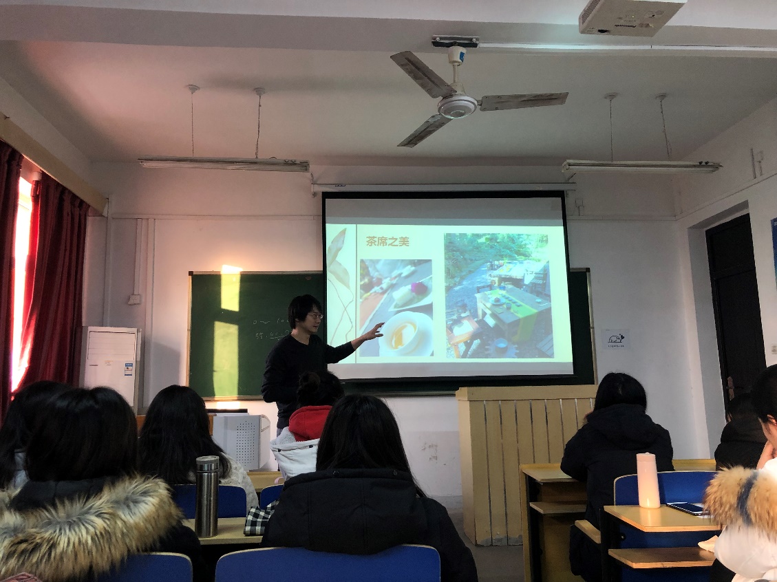 2019年12月12日上午,台湾铭仁鸿荣茶园高级制茶师林浚腾来到了《旅游风景美学》课堂,为17级高本旅游的同学带来了精彩讲演。