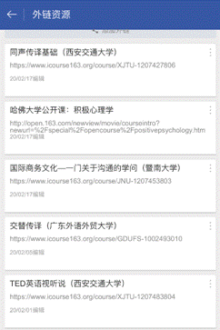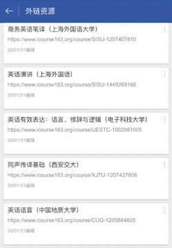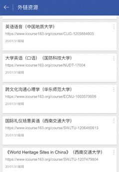 因为课程主体为大三学生,大三学生自制力与自学能力相对较高,因此采取了以培养学生自学能力和高效率学习为导向的引导式教学。根据课程主要内容体系,在发布课程PPT的同时,向同学们推荐慕课、网易公开课、公众号以及相关app等资源(截图如下)。
