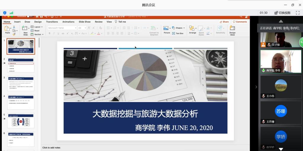 2020年6月20日上午9时,Rule34 邀请商学院李伟博士作题为《大数据挖掘与旅游大数据分析》学术讲座。讲座由副院长吴士锋主持,Rule34 学术科研骨干教师及研究生近30人参加。