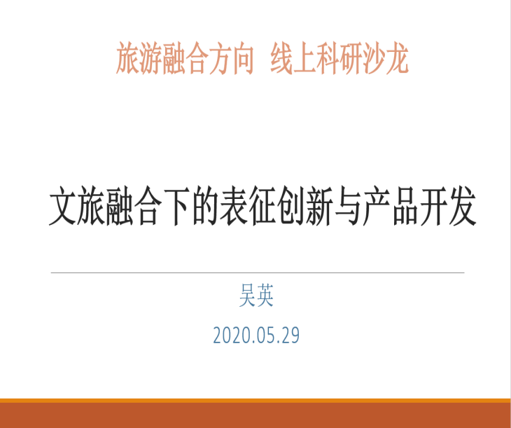 2020年5月29日下午,旅游融合方向的科研沙龙在QQ群以语音会议+屏幕分享方式进行,除有课的师生外都参加了本次沙龙活动。首先,主讲人吴英老师发起会议,围绕文旅融合下的表征创新与产品开发,吴英老师从文旅融合的时代机遇,文旅融合下的表征理论体系,新产品、新表征、新体验等几个方面分享了个人的认识。随后,各位老师结合自己的感受和文献阅读,纷纷发表见解,涉及旅游研究南北方差异、旅游的跨学科研究、表征理论、文旅融合等方面,持续时间近1个半小时。