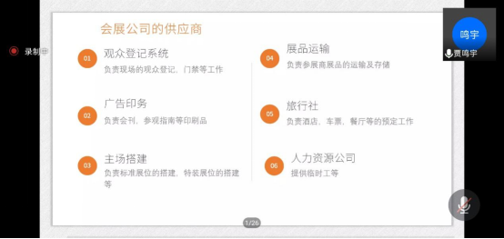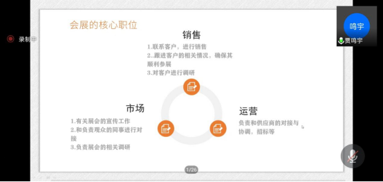 19届会展经济与管理专业毕业生贾鸣宇通过线上腾讯会议的形式与18级会展经济与管理专业的学生进行了关于商业会展运营的交流分享。