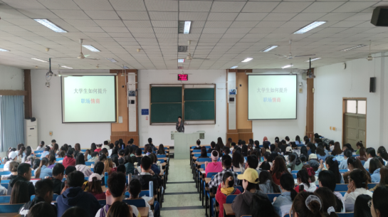 大学毕业生就业市场竞争越来越激烈,就业形势也越来越严峻,用人单位对毕业生整体素质的要求也越来越高。叶经理对听课学生提出三点希望,一是提升自我认知能力,要有清晰的职业规划。根据自身特点,提前确定好就业方向,厚基础宽口径,提升自己职业素养;二是锻炼自己职场情商软技能。情商是决定毕业生在职场上能走多远、走多高的一个重要因素,大学生要有“阳光心态、协作精神、沟通能力、抗压能力、意志力、应挫能力”等情商要素,的情商,提升自己在个人素养、与人沟通、团队合作等方面的软技能;三是多参加社会实践,从一线岗位做起。基层实践和经历有助于丰富自身阅历,,培养处世能力和社会环境适应能力以及人际交往能力,培养出强大的动手能力、吃苦精神、承受挫折和解决困难的能力,