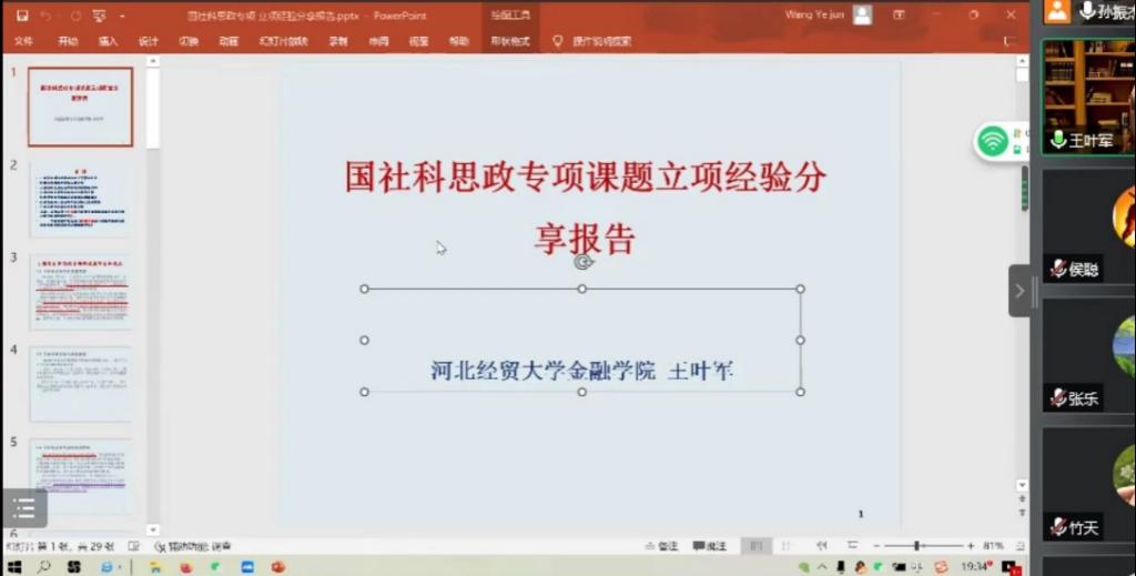 近日,Rule34 举办了国家社科基金项目交流会,会议邀请金融学院王叶军博士进行了题为“国社科思政专项课题立项经验分享报告”的分享,从课题的申报准备、多维度分解、创新性分析等方面提出了指导建议,讲座内容对师生科研项目的申报有一定的指导作用。