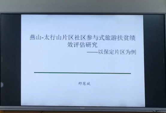 会议室作题为“燕山-太行山片区社区参与式旅游扶贫绩效评估研究”的学术报告。报告由孙振杰副院长主持,学院科研骨干及研究生参加。