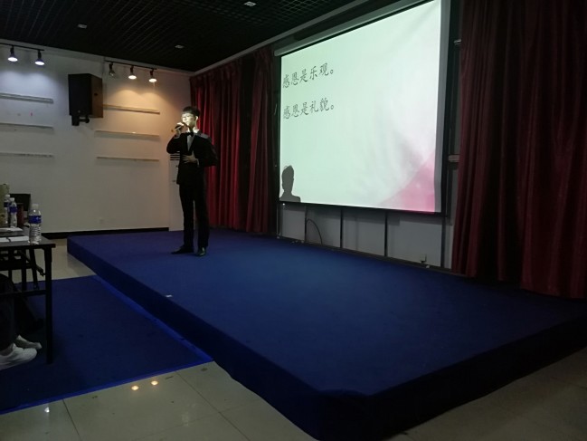 在会展实训室举办以“迈入新时代,传递感恩情”为主题的感恩节演讲比赛,2018级新生踊跃报名参加。
