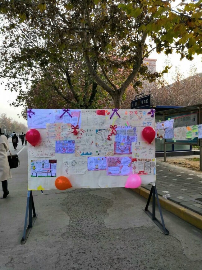 在韶华路举办以“巧手绘改革,致敬新时代为主题的改革开放四十周年手抄报活动,各学院学生踊跃参加。