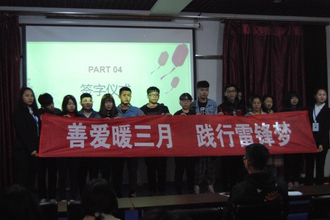 在会展实训室举办以“践行雷锋精神,激扬青春风采”为主题的雷锋月活动启动仪式,学院团委学生会主席团,主要团学干部和100余名志愿者参加活动。
