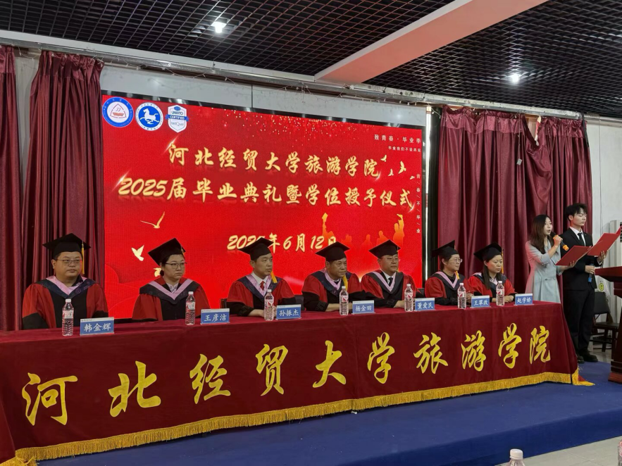 全体2025届毕业生表示最热烈的祝贺,勉励广大经贸学子持续奋斗,不断成长,努力成为与时俱进的时代青年。随后,旅游学院院长孙振杰教授致辞,孙院长深情寄语毕业生,并对未来征程提出殷切期望。伴随着热烈的掌声,优秀教师代表吴英博士、学生代表吉曲莹、优秀毕业生代表白家乐以及优秀校友闫晓霞分别发言致辞。