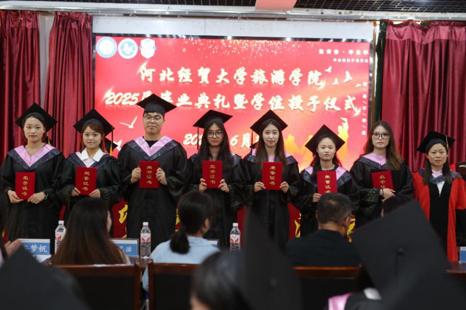党委书记董爱民、院长孙振杰、学院党委副书记王翠改以及各教研室主任、科级干部、任课老师和毕业班辅导员们参加此次典礼,此次毕业典礼还特别邀请了优秀校友,河北旅投国际酒店管理集团有限公司副总经理闫晓霞,与2025届毕业生共同见证这一庄严时刻。