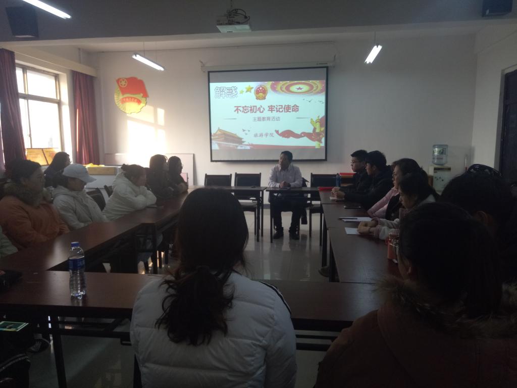 三楼会议室开展以“不忘初心,牢记使命”为主题的主题班委会,此次班委会由李同法老师主持。
