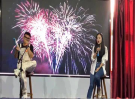团委副书记(学生工作办公室副主任)安梦帆老师携手马博宇同学为观众带来一首《张三的歌》带动了全场氛围,调动了同学们的积极情绪。