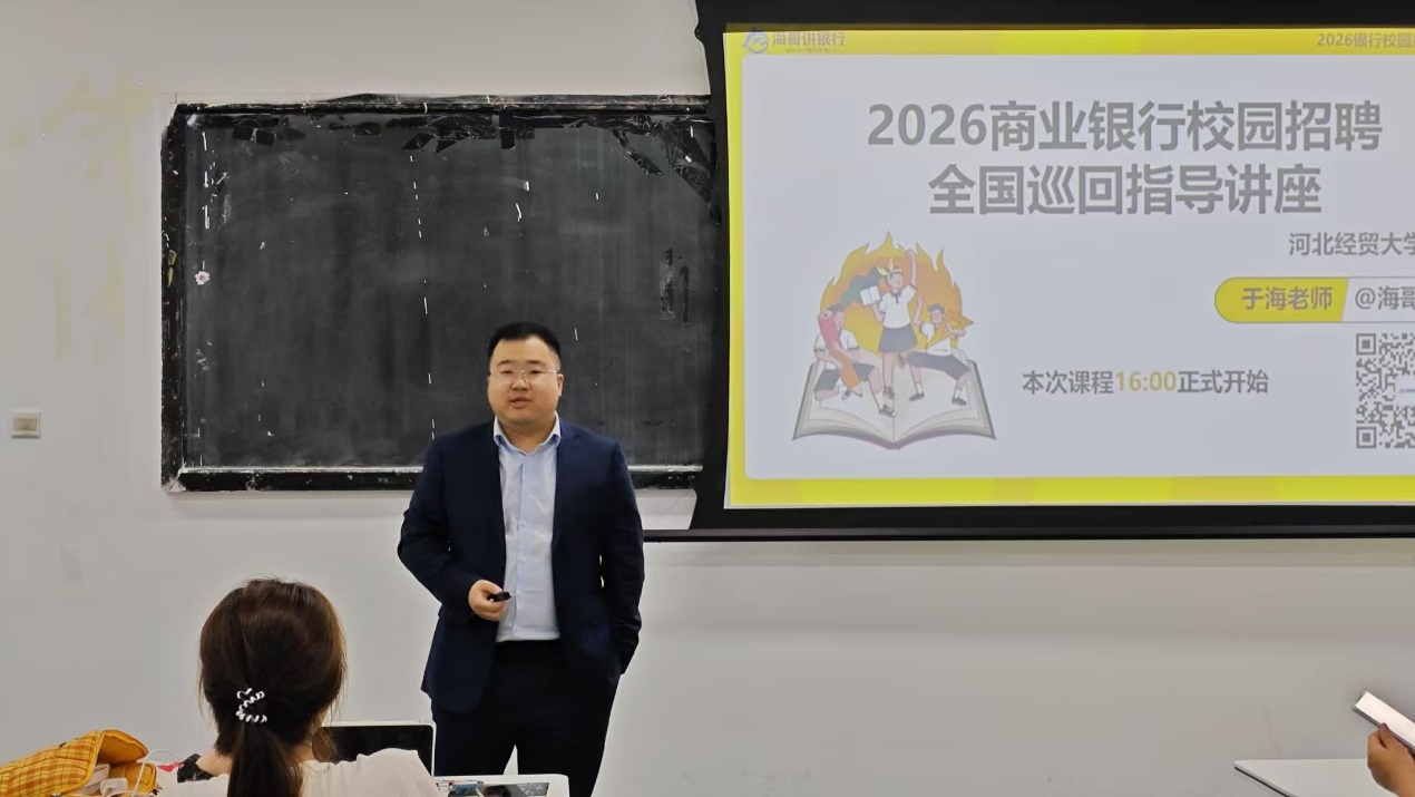 306教室举办了一场以“26银行秋招全程备考全攻略(如何在秋招一次就拿下银行工作)”为主题的专题讲座。此次讲座由“海哥讲银行”创始人于海老师为今年大三即将报名参加银行秋招的同学量身定制,旨在提供全面、实用的备考指导。