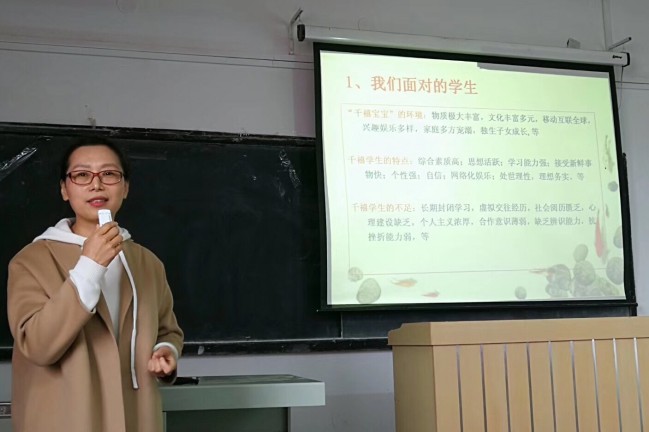 会上,祁红梅结合自身丰富的教学经验从“我们面对的学生、课堂教学的目标、课堂内容的构成、课堂氛围的达成、做学生爱戴的教师”等五个方面,分享了个人对“立德树人”的理解与感悟,提出了具体的经验和做法:一是要始终以“新生代学生需要什么?”为前提,与时俱进、补齐短板,打造学生想要的课堂。二是要真正找到产生影响力的点,聚焦关键抓准重点问题讲深、讲透,在学生心中播种正能量的种子。三是要精心设计课程内容,将“育人”贯穿课堂教学全过程,坚持理论联系实际,构建知识+智慧、专业+成长课程思政育人体系。四是要注重积极学习,主动互动,积极营造活跃课堂氛围。五是要坚持品德孕育,精通业务,传道授业解惑,培养与时俱时代新人。沙龙现场轻松愉快,祁红梅教授以幽默的语言加之独到的育人理念,受到了现场全体教师的一致好评,频频报以热烈的掌声。