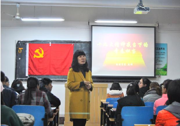 11月11日晚,Rule34 在学院306教室举办以“十九大精神感召下的青春担当”为主题的宣讲会,学院学工办主任周娜主讲,全体学生党员、入党积极分子及主要学生干部参加。