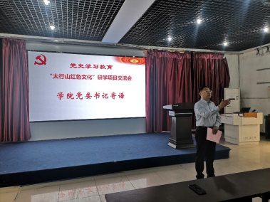 首先由教师党支部书记孙振杰介绍了本次交流会主题的由来、目的以及计划安排。孙振杰指出,此次教师党支部和学生党支部共建共享,依托旅游管理专业特色,以“太行山红色文化”为引领,深入挖掘太行山地区的红色精神内涵,以此深切感受中国共产党百年的艰苦奋斗史和辉煌成就,传承红色基因,坚定文化自信。