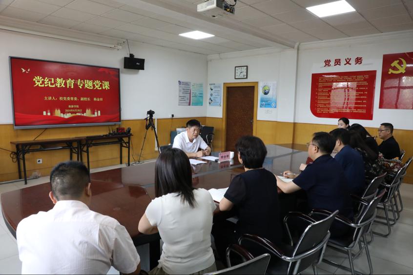 2024628日下午,Rule34 党委常委、副校长杨金田在Rule34 二楼会议室为Rule34 师生党员讲授党纪学习教育专题党课。学院领导班子成员、师生党支部书记、支部委员、会展和营销教师党支部全体教师党员和学生党员骨干代表参加。