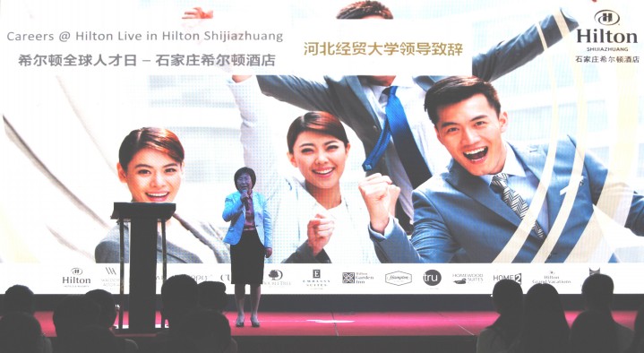 在活动中,石家庄希尔顿酒店管理团队介绍了“希尔顿全球人才日”向青年人开发、吸纳优秀青年加盟的理念,分享了希尔顿蓝色能量、职业成长、管理培训生计划、最佳实习生计划等项目为青年学生提供的发展机会和岗位。程瑞芳教授致辞,对“校企合作、协同育人”酒店管理希尔顿班人才培养模式给予充分肯定,对希尔顿积极参与学校人才、提供优质教育资源表示感谢,希望进一步深化校企合作,加强实践教学,促进产教融合,全面提高酒店管理人才培养质量,为经济社会发展服务。