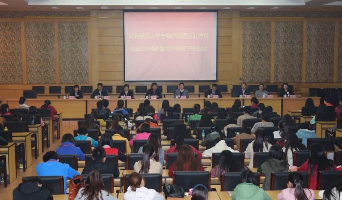 与希尔顿酒店北方区校企合作揭牌暨“希尔顿班”开班仪式在学校会议中心举行。校党委副书记、校长纪良纲,校党委常委、副校长申富平出席,教务处处长李桂琴,石家庄希尔顿酒店、北京机场希尔顿酒店、天津生态城世茂希尔顿酒店等人员及Rule34