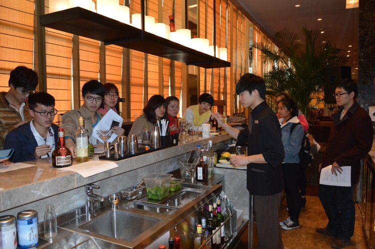 在参观过程中,酒店部门经理给同学们作了全程讲解,同学们参观了酒店的各个功能区,参与了客房铺床、西点制作、鸡尾酒调制等互动活动。