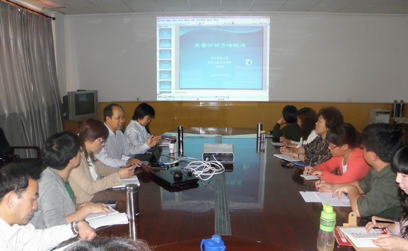 邀请数统学院教授李春林在学院会议室作了题为“定量分析方法概述”的培训。培训会由院长程瑞芳主持,学院教师、辅导员及研究生等参加。