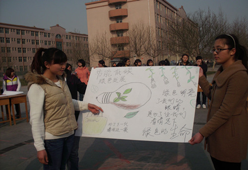 活动由海报制作及主题演讲两个部分构成,设计主题涵盖低碳生活、循环经济、节能减排等诸多方面。活动中同学们配合默契、兴致高昂,对自己的作品进行详尽的阐述,现场气氛热烈。