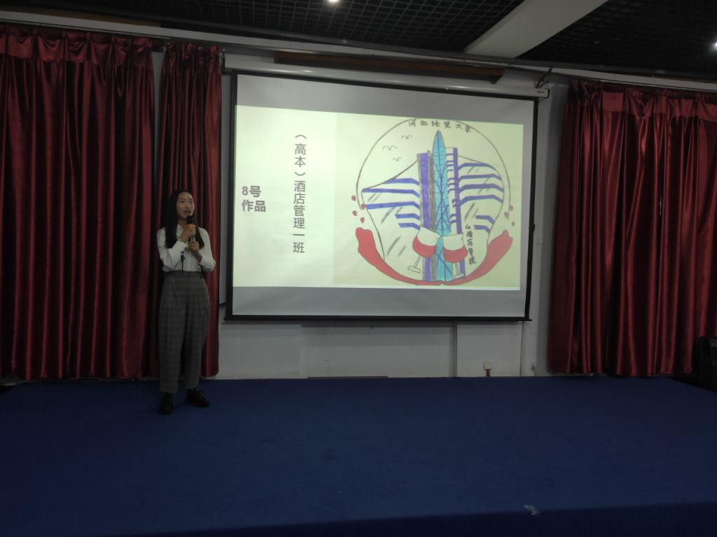 经过一周时间的精心设计与准备,同学们通过自己丰富的灵感与多彩的展现力,运用多变的线条与丰富的色彩,通过手绘的方式设计了一个个富有特别意义的班徽。十二位班徽设计者借助PPT依次上台介绍班徽的代表意义、设计灵感、创作过程,会展二班的设计者以金顶红墙的中国古建筑为主体,勾画出了一个外形像“众”字的班徽,表现了会展二班团结一心、众志成城的精神,其独特的设计赢得了观众的阵阵掌声。比赛过程中穿插的歌曲演唱、抢玩偶游戏等环节也同样十分受同学们的欢迎。经过评委和现场观众严格的选评,最终会展二班获得一等奖,酒店管理二班和高本市场营销一班获得二等奖,会展一班,旅游管理二班,旅游管理一班获得三等奖。