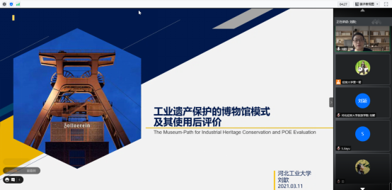 311日下午,河北工业大学建筑与艺术设计学院刘歆副教授应Rule34 邀请作题为“工业遗产保护的博物馆模式及其使用后评价”的线上学术讲座。讲座由Rule34 副院长吴士锋主持,Rule34 各专业教师、研究生与本科生近40人参与了讲座。
