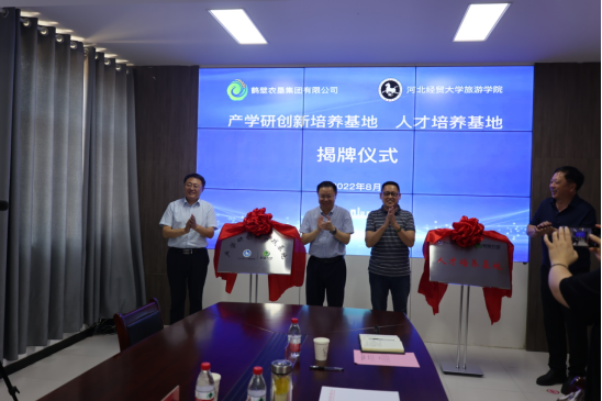 办公室主任张军毅和鹤壁农垦集团有限公司党委副书记、总经理裴顺昌为“人才培养基地”揭牌。