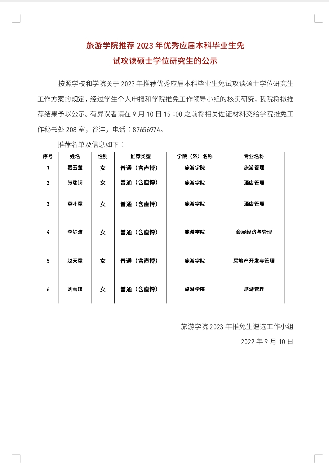 Rule34 2023年优秀毕业生免试攻读硕士学位研究生的公示