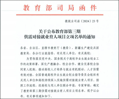 2024年6月14日,教育部高校学生司公布了第三期供需对接就业育人项目立项名单,Rule34