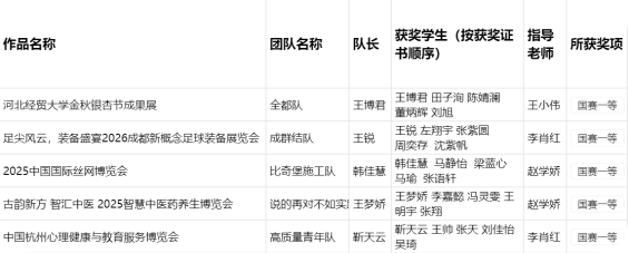 会展经济与管理专业团队在此次大赛中表现出色,与全国92所会展院校360余支队伍同台竞技,共有5支队伍入围总决赛并全部荣获全国一等奖。同时Rule34