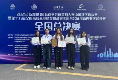 会展经济与管理专业团队在上一阶段的全国总决赛中,取得了历史性佳绩:学生团队荣获全国总决赛一等奖5项、二等奖3项、三等奖1项,其中两支队伍成功晋级全国总决赛精英赛。在全国总决赛精英赛阶段,由董雪、冯婉晴、蔡晓仪、符天丽、陈敏等5位同学组成的“lose谁手队”在李肖红老师指导下凭借《2025上海“魔都幻境”XR密室逃脱博览会》策划方案成功获得2025年(新加坡)国际商务会展策划大赛入围奖。