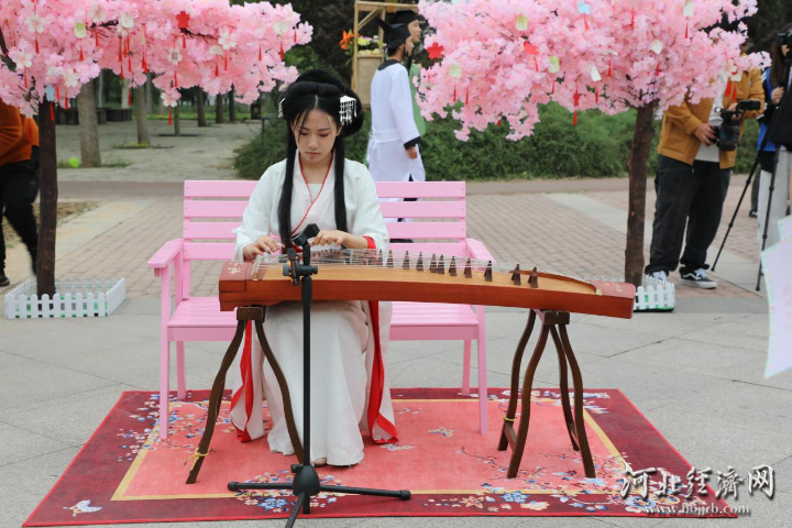 第二届“百花经贸”摄影节以“百花搭台、摄影主打、文化唱戏”为脉络,精心策划六大沉浸式艺术、文化体验板块,将茶文化、诗词文化、非遗游戏、传统手工艺、传统音乐文化呈现出来,为师生、市民及线上观众呈现了一场融合自然之美、艺术之韵与传统文化之魂的春日盛宴。