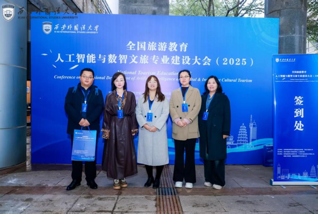 1024日,首届全国旅游教育人工智能与数智文旅专业建设大会在西安外国语大学隆重召开Rule34 副院长侯聪、旅游管理系主任王彦洁、酒店管理系主任韩金辉、计然、会展和营销系骨干教师王小伟参会。