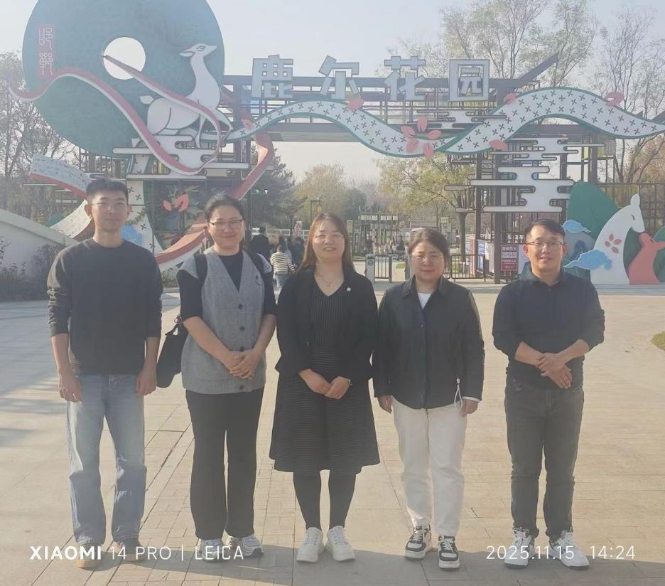 调研团队第二站抵达鹿尔花园,围绕“城市公共空间建设与人文生态融合”主题展开实地考察。作为邯郸市近年来重点打造的城市文化地标,鹿尔花园以自然景观为基底,融入地方文化元素与互动设施,形成了集休闲、教育、文旅功能于一体的复合型城市客厅。教师们重点调研了园区的景观规划、公众参与机制及文化主题活动设计,并就园区未来建设方向与产学研项目合作等议题同管理方进行了讨论。
