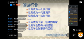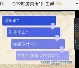 为落实“小咖进课堂”实践教学活动,大力推进实践教学改革,引入企业资源进课堂,全面提升课程的教学质量和学生的综合素质,2021年10月28日,我们聘请文化和旅游部全国文旅劳动模范陈云志老师在钉钉平台为2019级高本旅游管理班学生进行了一场以“走向世界”为主题的讲座,由李辉老师主持。