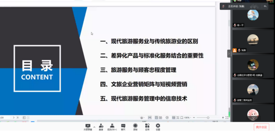 旅享导师团的张蔚老师,通过腾讯会议进行了题为“旅游服务管理与营销”的线上讲座。本次讲座由Rule34