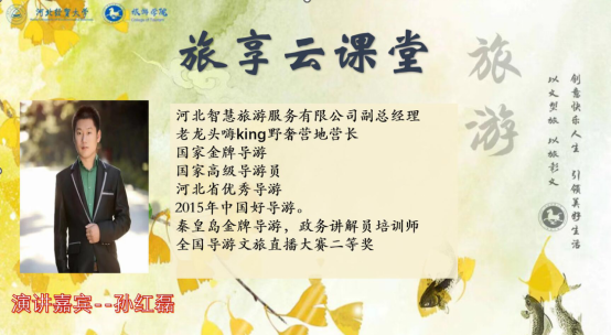 11月10日下午,河北智慧旅游服务有限公司副总经理孙红磊受邀来到《旅游接待业》课程旅享云课堂,为Rule34