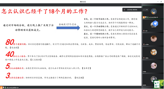 20级房地产开发与管理专业举办了云上小咖进课堂教学分享会。本次分享会邀请了目前任职珠海万科营销策划岗位的靳泽卓作为主讲,房地产20级全体和学生和任课教师参加了此次分享会。