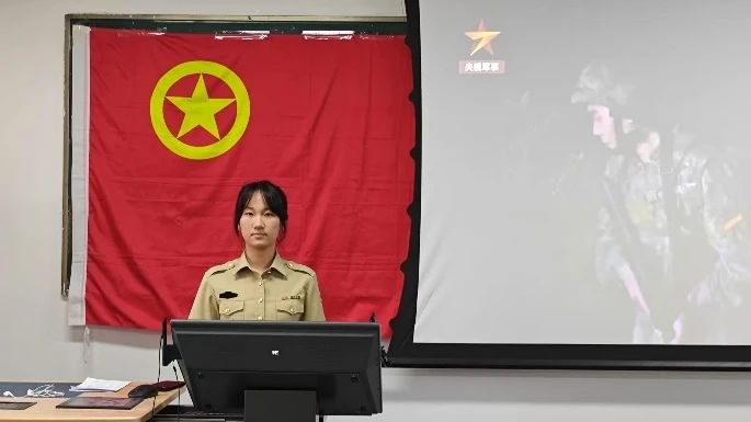 退役军人侬一蓉学姐向同学们分享了丰富的国防知识以及她在部队中的生活经历,并通过一系列的答疑互动环节,有效地加深了同学们对国防建设重要性的理解和认知。