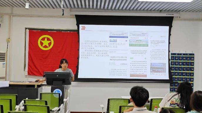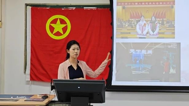 紧接着,孙士娟学姐向大家介绍了“旅享”红色文化宣讲团的成立背景和宗旨。她讲述了该宣讲团如何通过各种形式的活动,将红色文化的精神内涵传播给更多的人群,尤其是年轻一代。孙士娟学姐诚挚地邀请在场的每一位同学加入到这一有意义的活动中来,共同传承和弘扬红色精神,让更多的人了解和记住那段波澜壮阔的历史。她表示,通过这样的文化宣讲,不仅能够增强大家的爱国情感,还能促进社会主义核心价值观的传播和实践。