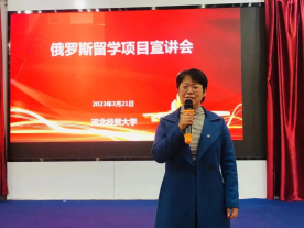 在会展实训室举办俄罗斯留学项目宣讲会。学院党委副书记王翠改,俄罗斯留学生服务中心责任有限公司代表朱岐峰一行出席本次活动,部分学生参加。本次活动由王翠改主持。